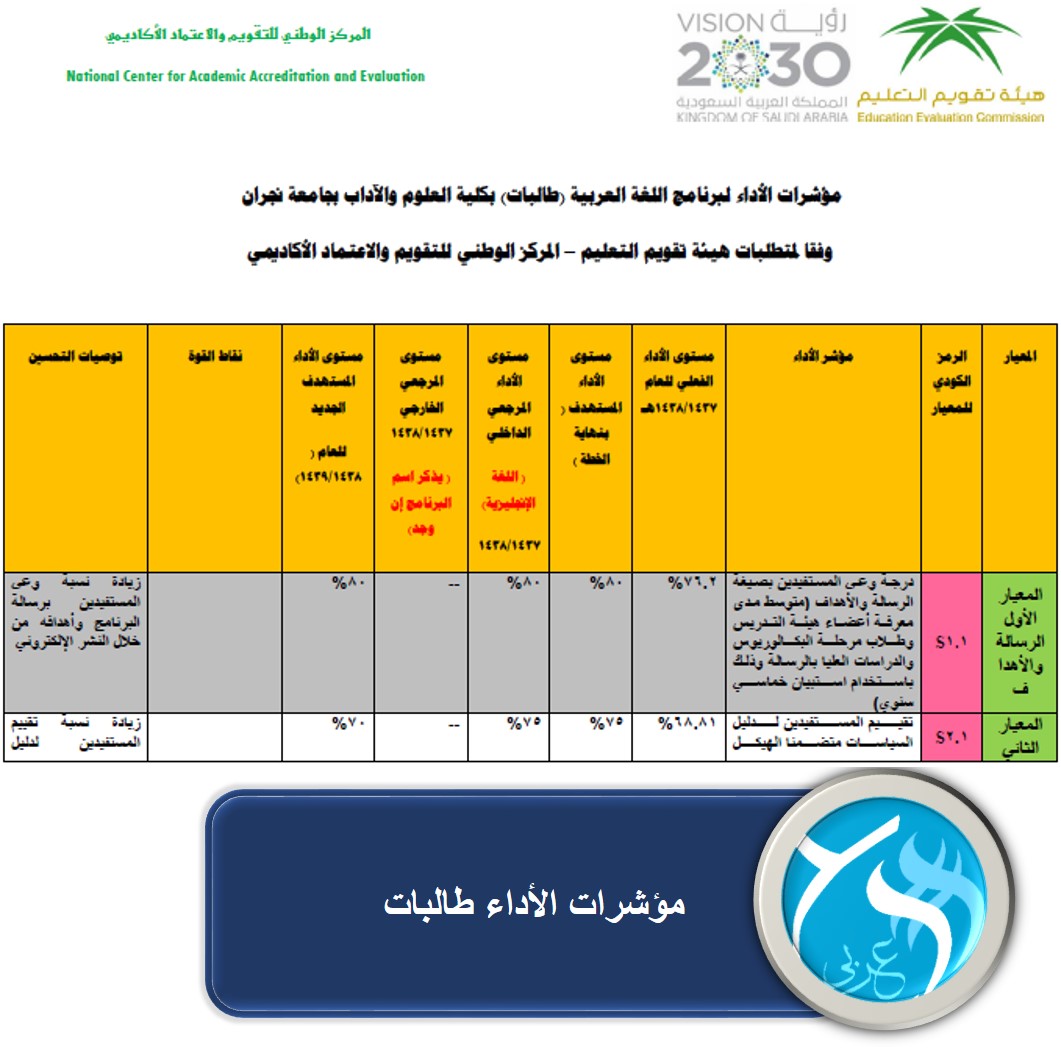 College Of Science And Arts Najran دليل مؤشرات الأداء